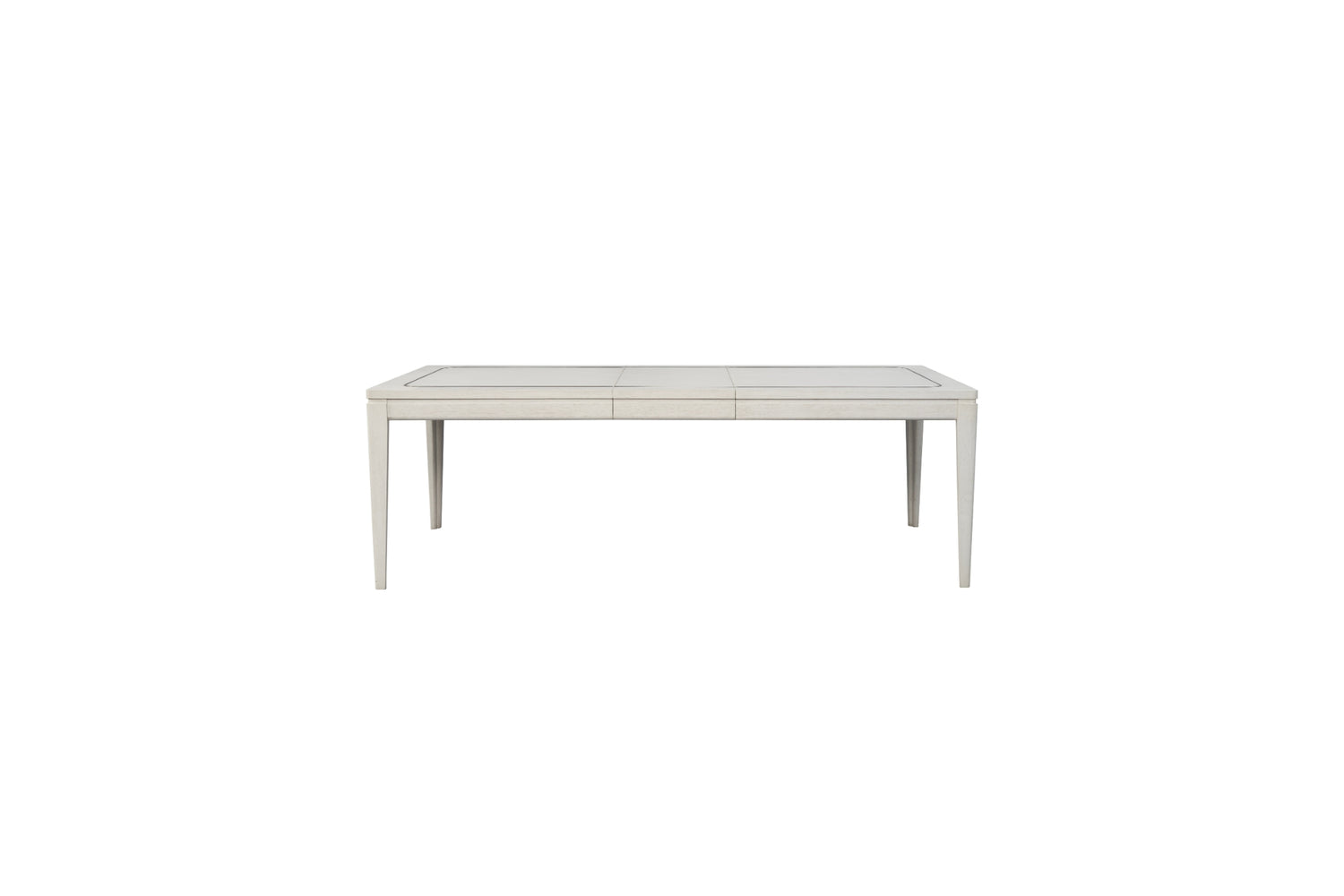The Trilogy Leg Table in Vanilla features a sleek finish accented by a subtle metal inlay, adding a touch of modern sophistication. With clean lines and a spacious surface, this sturdy table blends natural inspiration with contemporary elegance for any dining space.