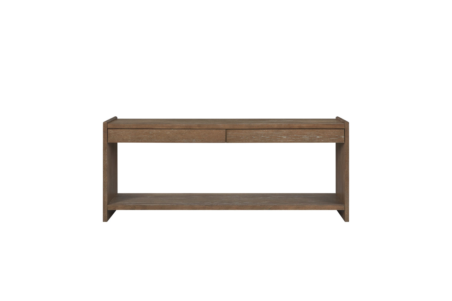 The Trilogy 2-Drawer Sofa Table in Cocoa features a natural wood finish that highlights rich cocoa tones, offering both elegance and functionality. With two spacious drawers for storage and an open lower shelf for display, this versatile piece adds warmth and sophistication to any space.